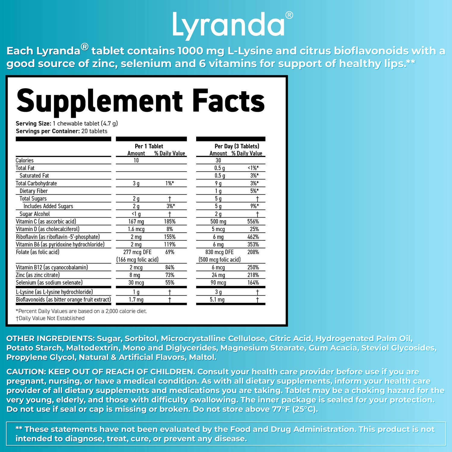 - Wach tablet contains 1000mg Lysine + 1.7mg citrus bioflavonoids